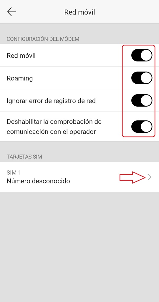 3) En el menú que se abre, marcamos todas las opciones y seleccionando abajo la SIM